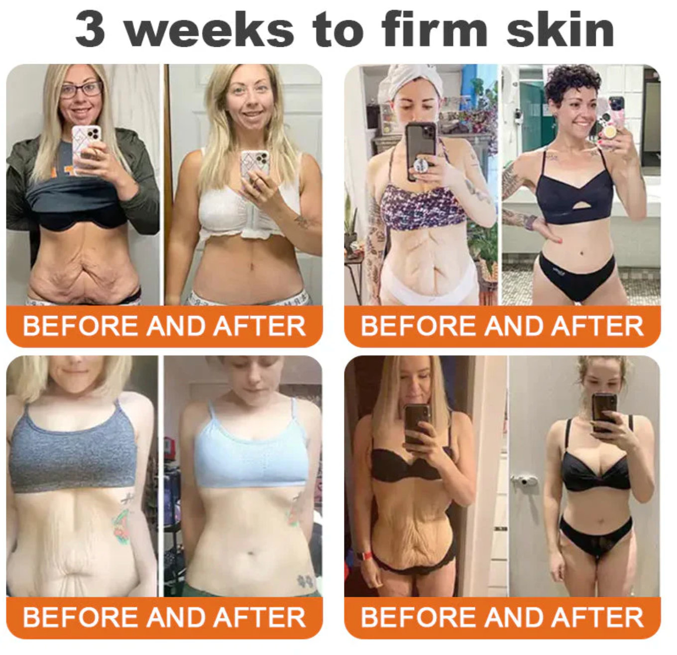 I'm 37 years old this year, and after the birth of my second child, my belly turned into a typical 'mommy belly,' saggy and wrinkled. I felt terrible and didn't even want to exercise because it jiggled with every step. I tried cocoa butter and massages for 2 months, but nothing really changed. My doctor suggested surgery, but I didn't want scars or the high costs. My husband ordered this product for me, and it feels amazing. It absorbs quickly and leaves no residue, even in the folds. I use it every day, applying it 3-4 times, and by the fifth day, I could feel my skin tighteningâa cool, firm feeling. After two weeks, I could see daily changes with my own eyes. The skin gradually became firmer, and the elasticity slowly returned. Now, after almost two months, my belly is completely normal againâno wrinkles, no sagging, just firm like the skin of a 20-year-old. I've also noticed that the skin around my belly has become brighter. I'm planning to get some for my 60-year-old mother next because I believe it will work wonders on her aging arms too. ââAshley Moore ďźOttawa